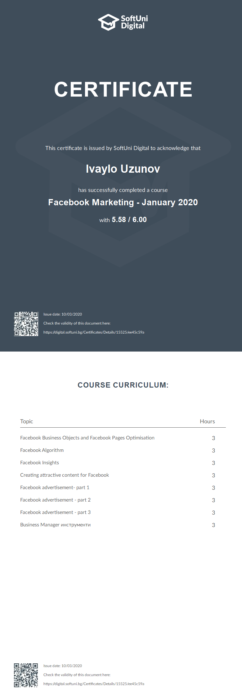 This certificate is issued by SoftUni Digital to acknowledge that
