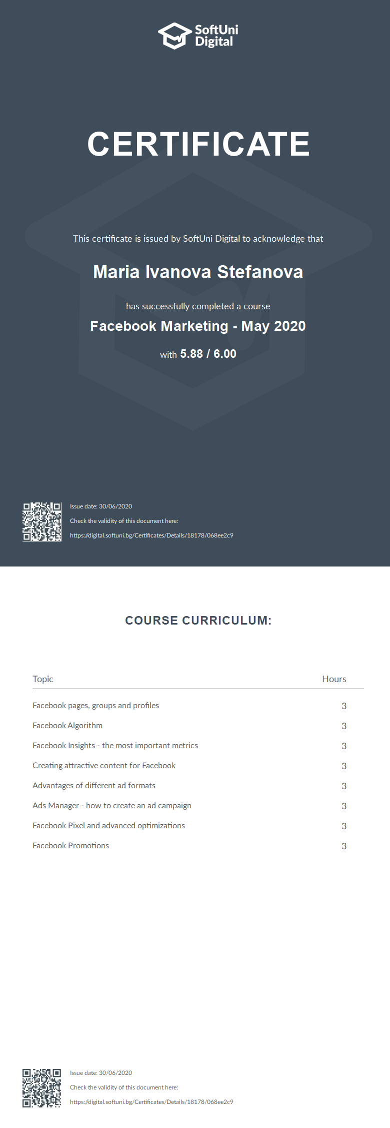 This certificate is issued by SoftUni Digital to acknowledge that