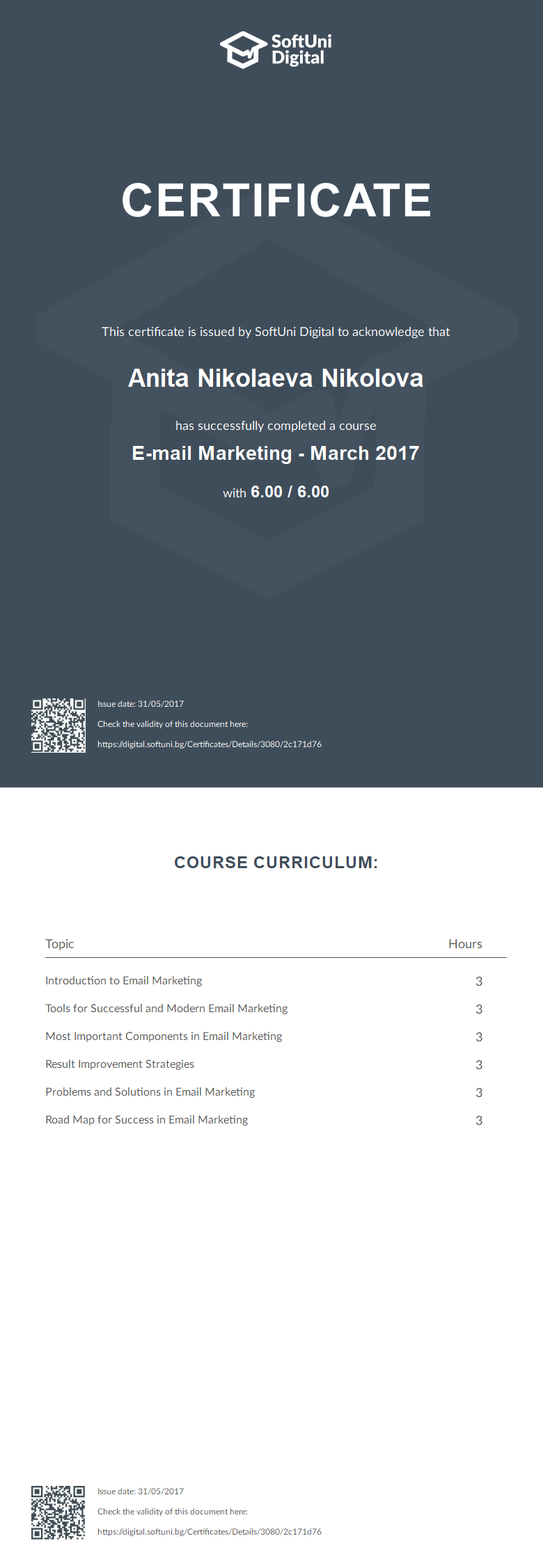 This certificate is issued by SoftUni Digital to acknowledge that